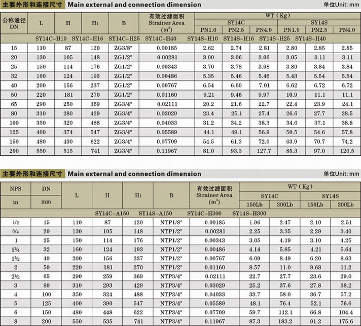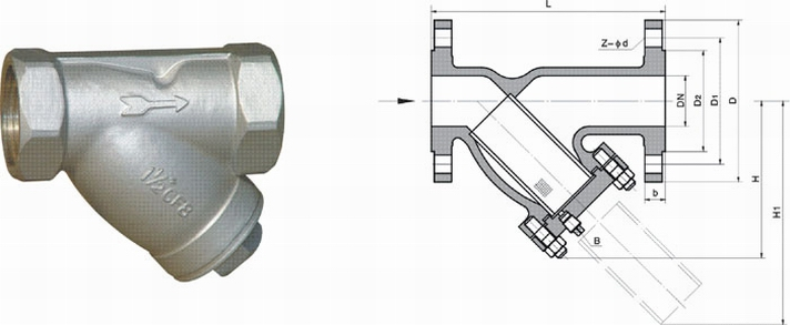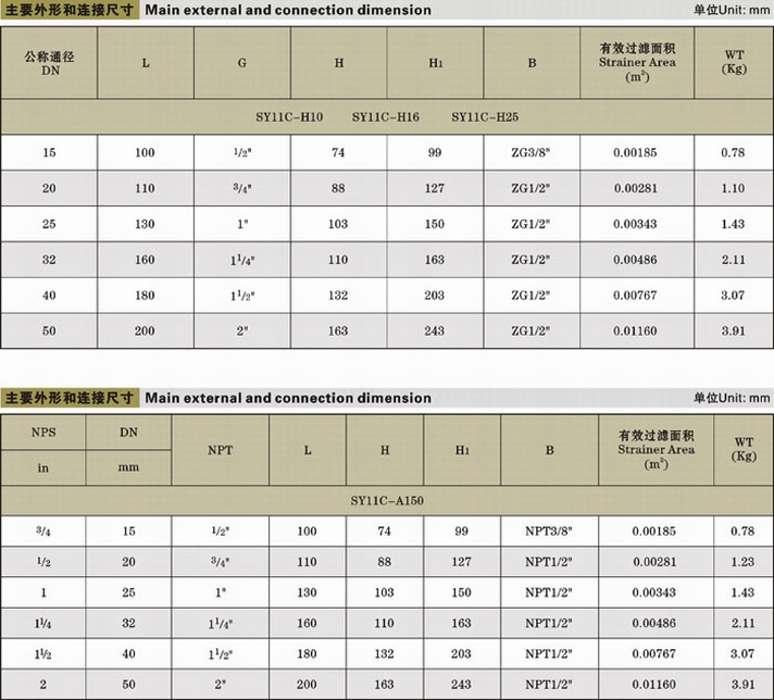 下面圖片中概述了Y型過濾器的完整結構特點和尺寸:
