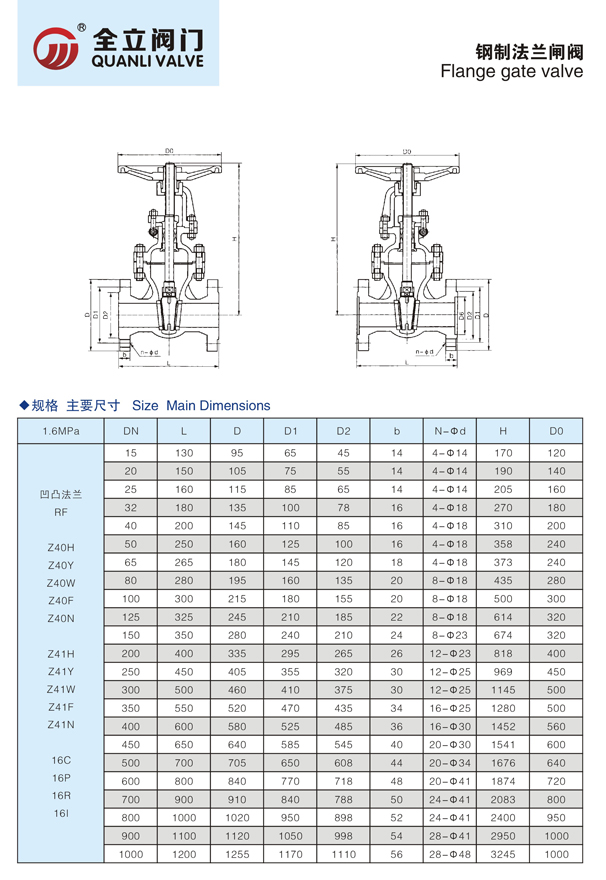 閘閥(gate valve)的啟閉件是閘板,閘板的運動方向與流體方向相垂直,閘閥只能作全開和全關 , 不能作調節和節流。閘板有兩個密封面 , 最常用的模式閘板閥的兩個密封面形成楔形、楔形角隨閥門參數而異 , 通常為 50, 介質溫度不高時為 2°52' 。楔式閘閥的閘板可以做成一個整 體,叫做剛性閘板;也可以做成能產生微量變形的閘板 , 以改善其工藝性 , 彌補密封面角度在加工過程中產生的偏差 , 這種閘板叫做彈性閘板。不銹鋼閘閥材質分為304不銹鋼閘閥,316不銹鋼閘閥,321不銹鋼閘閥。表示方法為:Z41H-16P。
